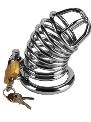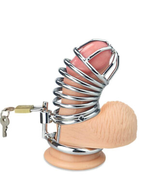 Acciaio inossidabile caratterizzato da un dorso curvo con anelli di chiusura e un dilatatore rimovibile che può essere bloccato e sbloccato avvitandolo / togliendolo! Mettilo semplicemente nella gabbia e allaccia l’anello di base dietro i testicoli, quindi rinchiudilo con il lucchetto.