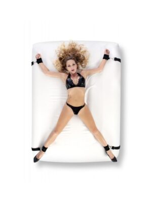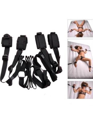 Due paia di manette regolabili (polsini e cavigliere) con chiusure in velcro si agganciano alle estremità delle cinghie.