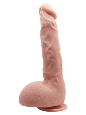 Realizzato in un materiale simile al tessuto corporeo con superficie flessibile e vascolarizzata, completo di testicoli. La sua ventosa può essere fissata su qualsiasi superficie piana. Pulizia: prima e dopo ogni utilizzo, lavare con acqua tiepida e sapone liquido, volendo anche con un detergente disinfettante per Sex Toys.