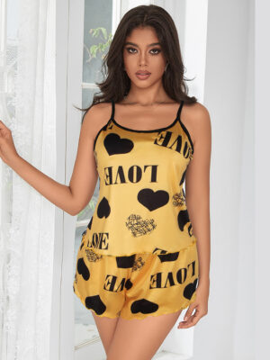 Giallo con scritte e cuoricini neri, sexy in tessuto morbidissimo sulla pelle, per le tue folli nottate!