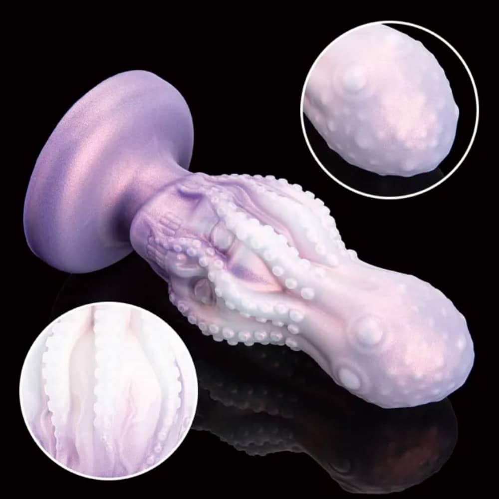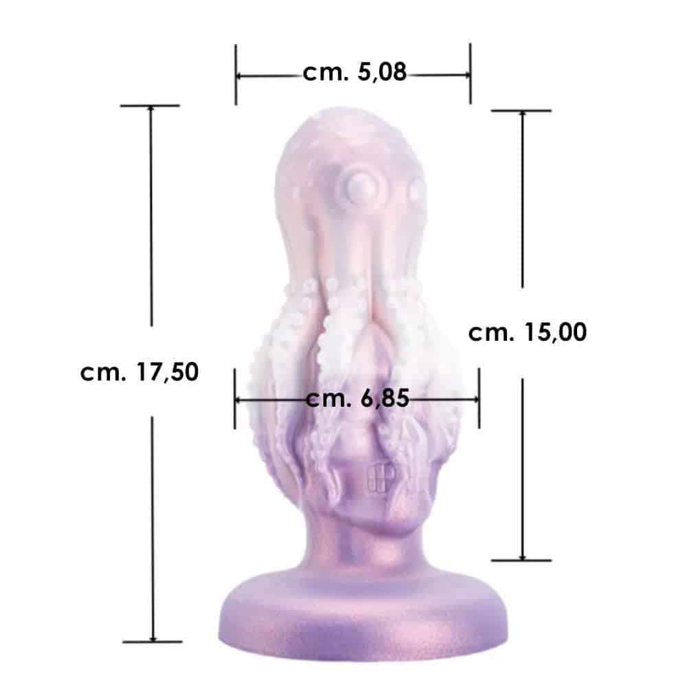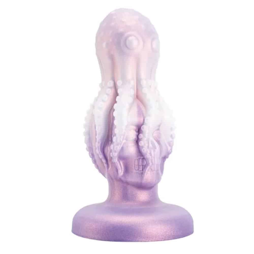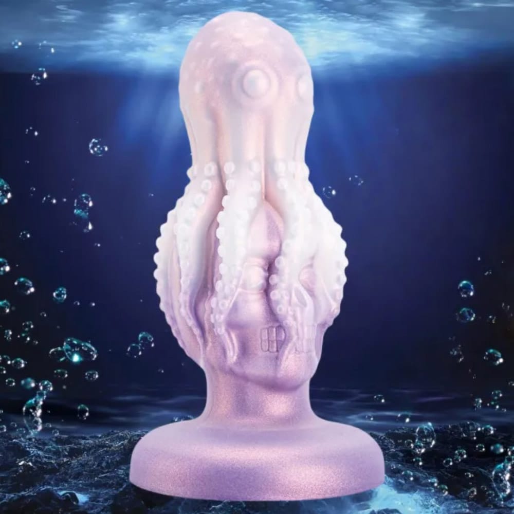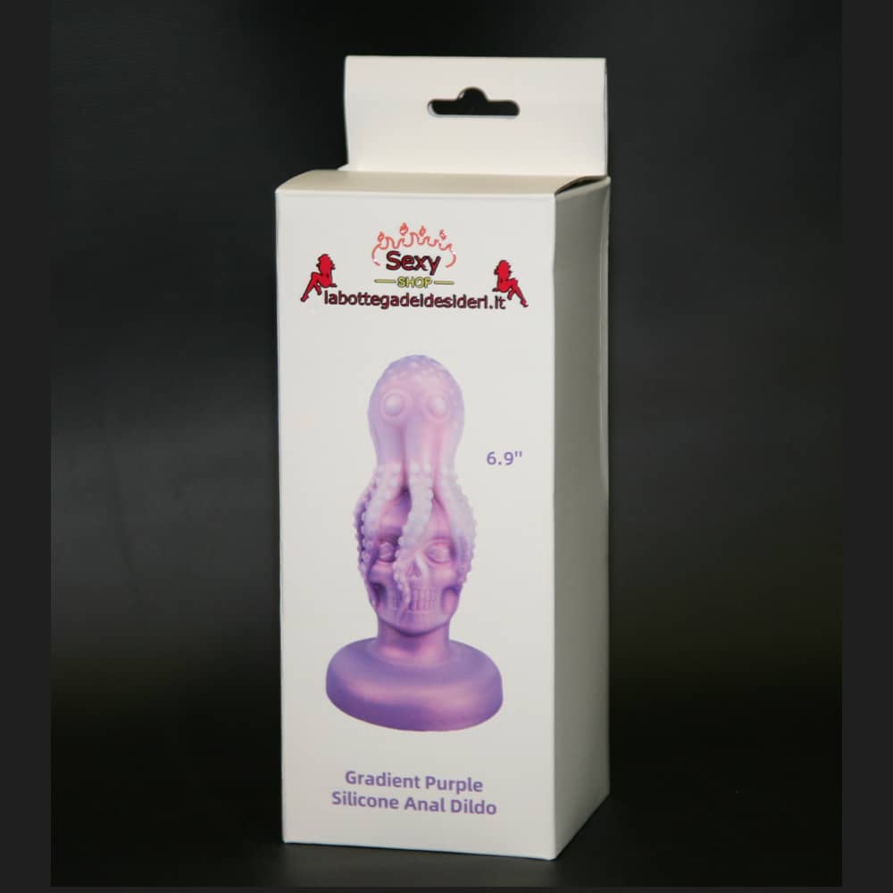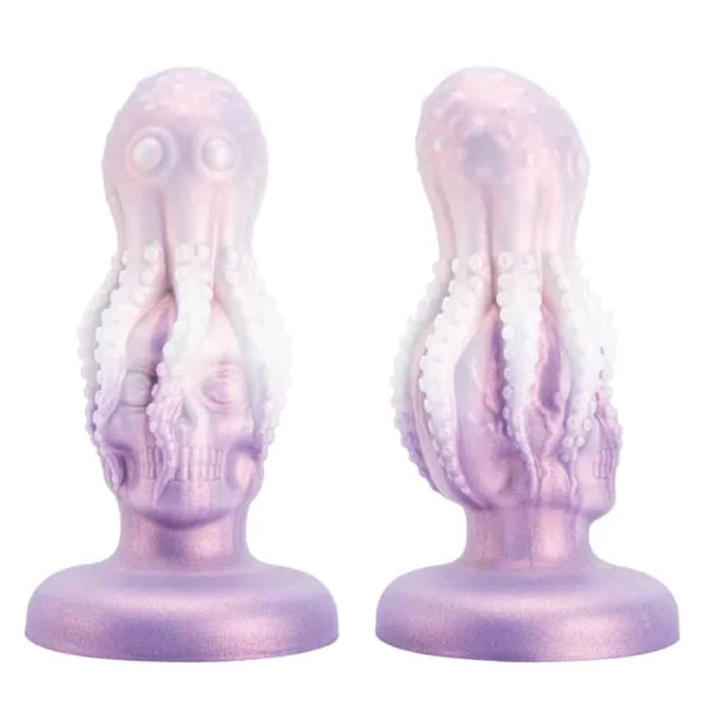 Dildo anale a forma di polipo appoggiato su un teschio.