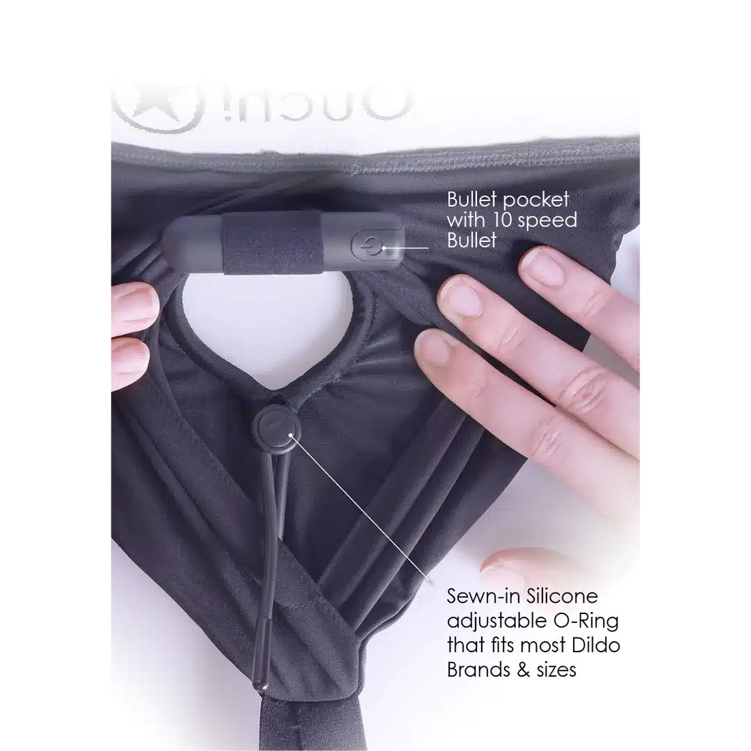Semplici ma eleganti, queste mutandine strap-on sono perfette per te e il tuo partner. Non preoccuparti di cinghie e fibbie complicate, basta indossarle, aggiungere il giocattolo e divertirti. Con una varietà di stili, forme e dimensioni, ognuno troverà la sua vestibilità perfetta. Grazie all’esclusivo sistema O-Ring, quasi tutti i dildo e i dong si adattano a queste mutandine strap-on senza bisogno di O-Ring aggiuntivi. Ogni mutandina è dotata di un Bullet vibrante ricaricabile in silicone di alta qualità a 10 velocità per sensazioni extra per te e il tuo partner. Realizzate in materiale elastico compressivo di alta qualità per una migliore vestibilità, comfort e prestazioni. Il tessuto leggero e traspirante allontana l’umidità dal corpo, assicurandoti di rimanere fresco quando l’atmosfera si scalda. Perfette per Packing, Pegging e Penetrazione. Disponibili in 2 taglie: XS/S, M/L. Garanzia di 1 anno. Si abbinano perfettamente ai dildo e ai dong All Ouch! e RealRock.