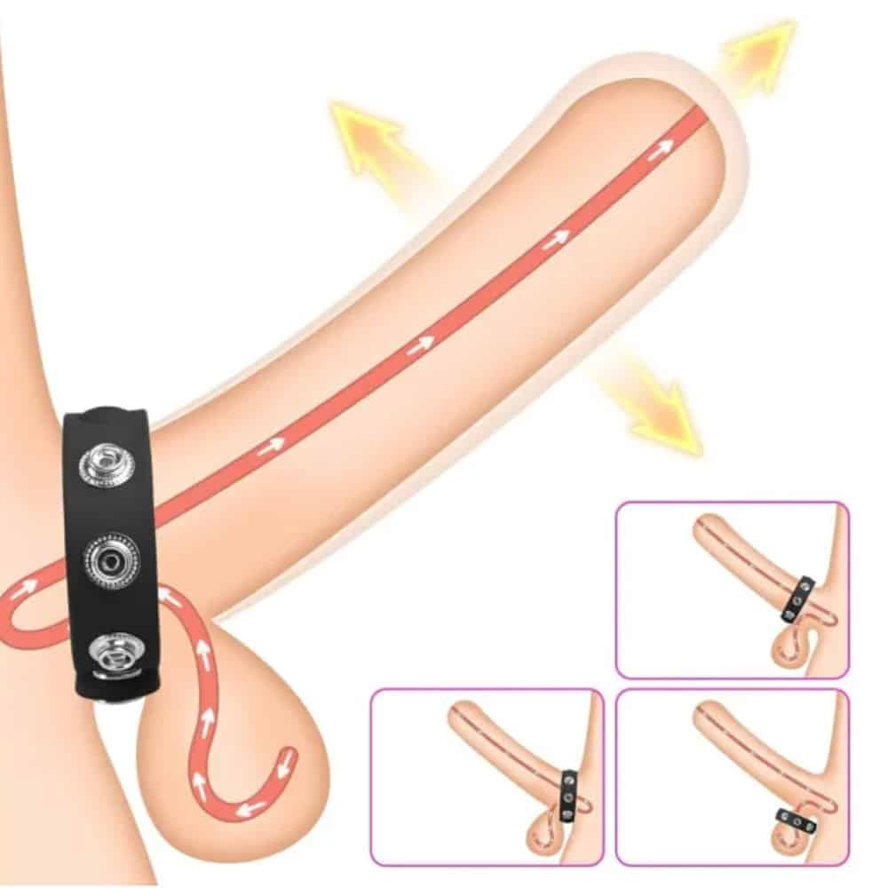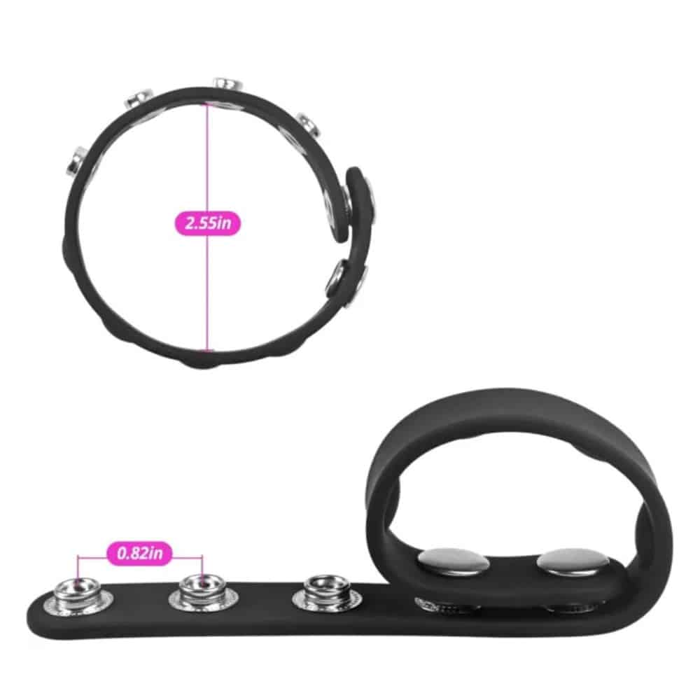 Un versatile cinturino regolabile realizzato in morbido silicone di grado medico con robusti bottoni automatici in metallo. Il design multi-snap consente agli utenti di regolare la vestibilità, mentre la struttura liscia e impermeabile semplifica la manutenzione, compatto e resistente, le diverse posizioni dei bottoni automatici si adattano a un’ampia gamma di vestibilità, fermando il flusso sanguineo aiuta l’erezione.