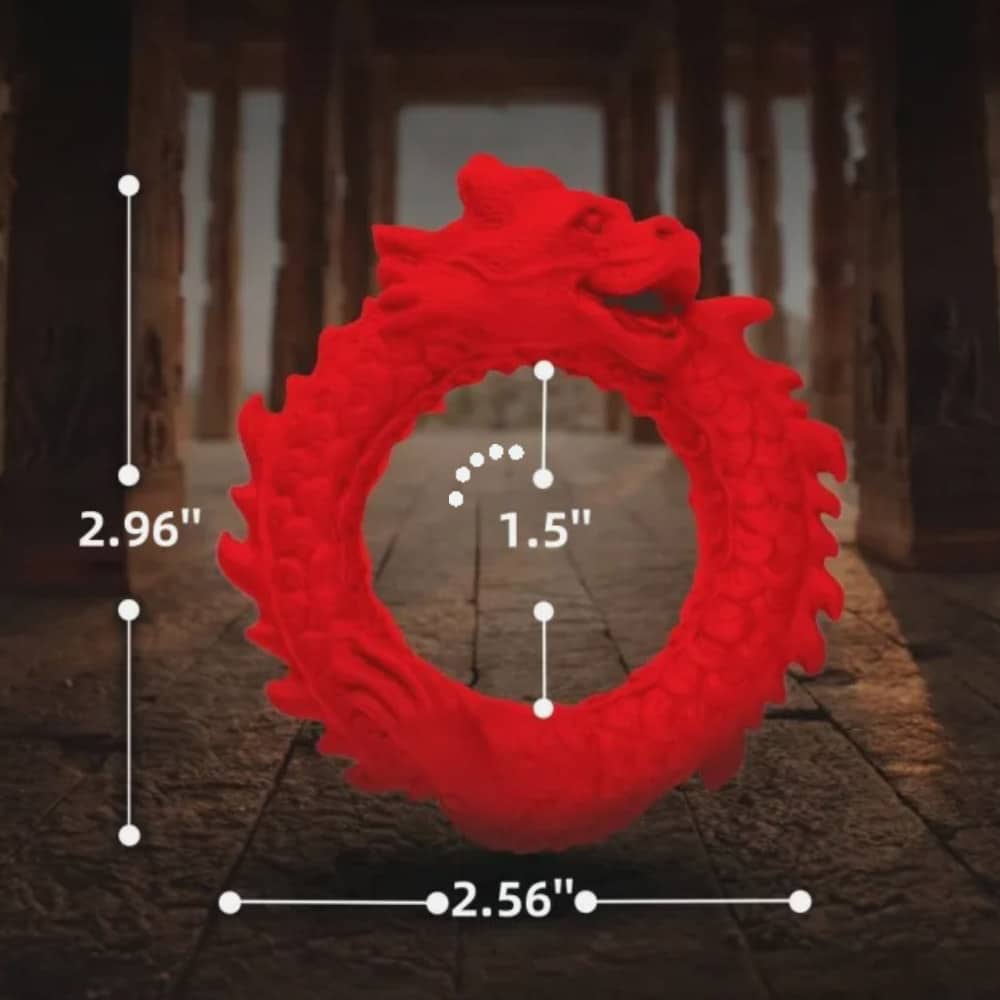 Un sorprendente anello fallico a tema drago, realizzato in silicone di qualità medica. Le squame scolpite e la finitura rossa audace creano un forte impatto visivo, mentre l’anello flessibile offre una vestibilità aderente,  confortevole, garantisce un erezione forte e duratura. Completamente impermeabile e facile da pulire. Diametro esterno 7,5 cm, interno 3,8 cm (non allungato), di qualità medica, impermeabile. Sicuro e confortevole con bordi lisci per il massimo comfort.