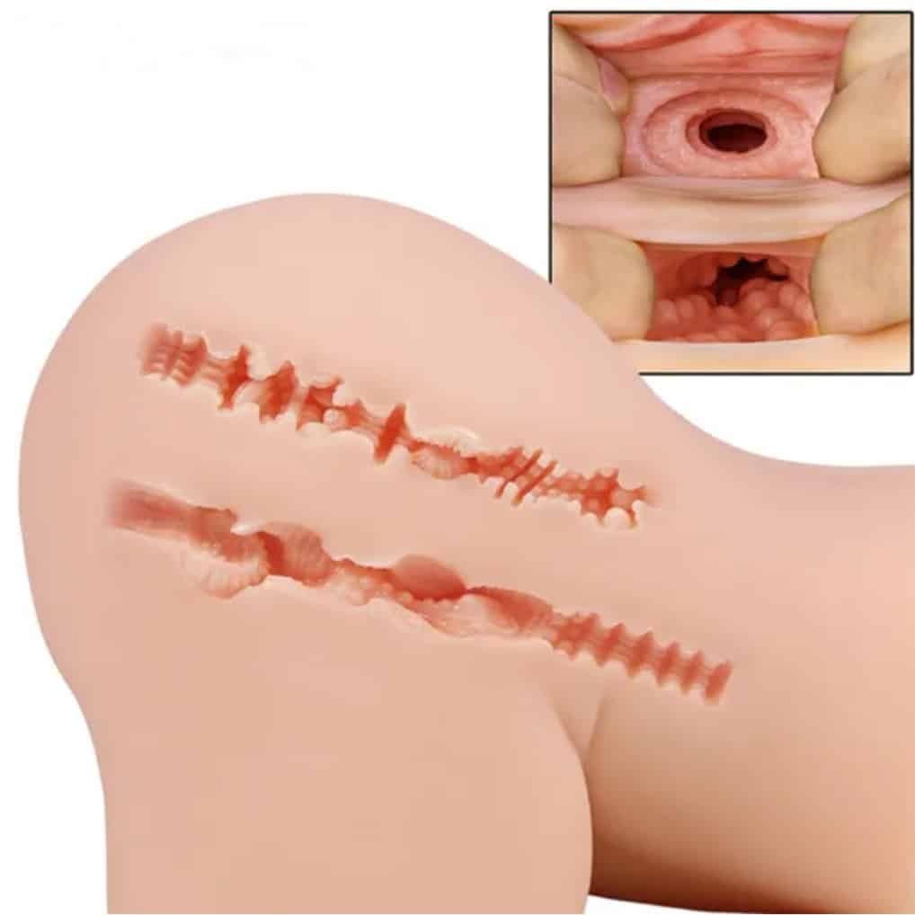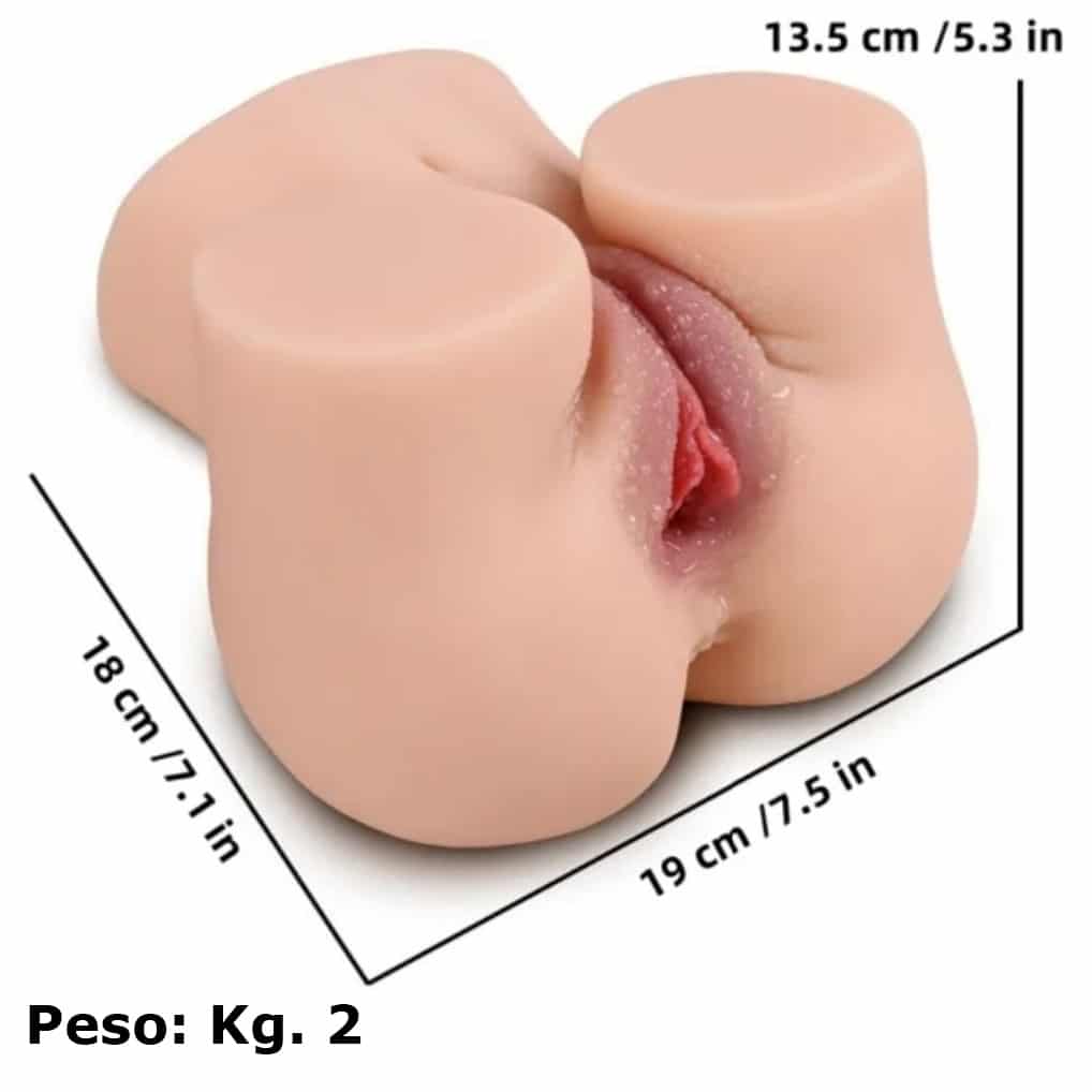 I suoi dettagli sono unici e i suoi canali sono profondi ed emozionanti per darti il ​​benvenuto nel profondo. I dettagli all’interno e all’esterno simulano le pieghe della pelle, hanno una forma ergonomica per un ottimo sostegno e comfort mentre ti masturbi. Il materiale è TPE flessibile ed estensibile di alta qualità, con un tocco e un’estetica molto simili alla pelle, molto piacevole al tatto. Realismo al massimo livello. Due fori, uno vaginale e uno anale. L’ingresso vaginale presenta un canale strutturato, pieno di protuberanze e creste per aumentare il piacere. Da parte sua, l’ingresso anale presenta un canale dal design diverso, più stretto e strutturato per simulare meglio il sesso anale. Ti consigliamo solo l’uso di lubrificanti a base d’acqua e di pulire il tuo masturbatore prima e dopo ogni utilizzo con acqua tiepida e un buon detergente per giocattoli.